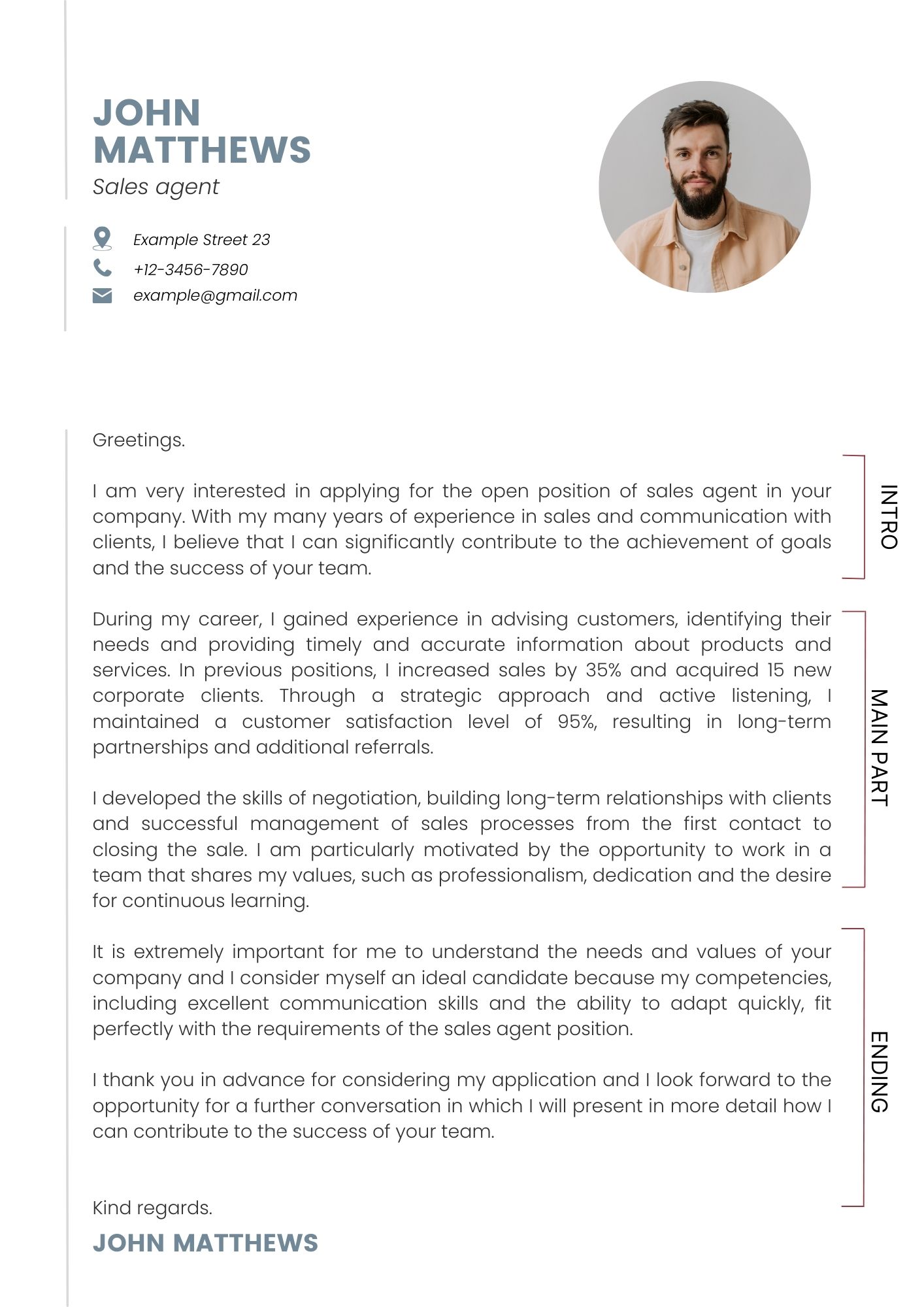 As shown in the example below, a motivational letter should have three parts: