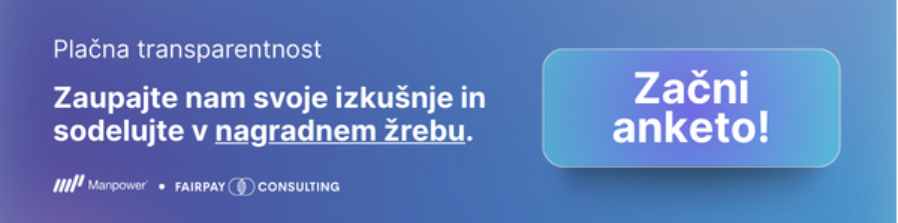 Da bi dobili čim bolj natančno sliko razmer na trgu, smo v sodelovanju s Fairpay Consulting pripravili kratko anketo, v kateri lahko delite lastne izkušnje in mnenje o plačni transparentnosti.
