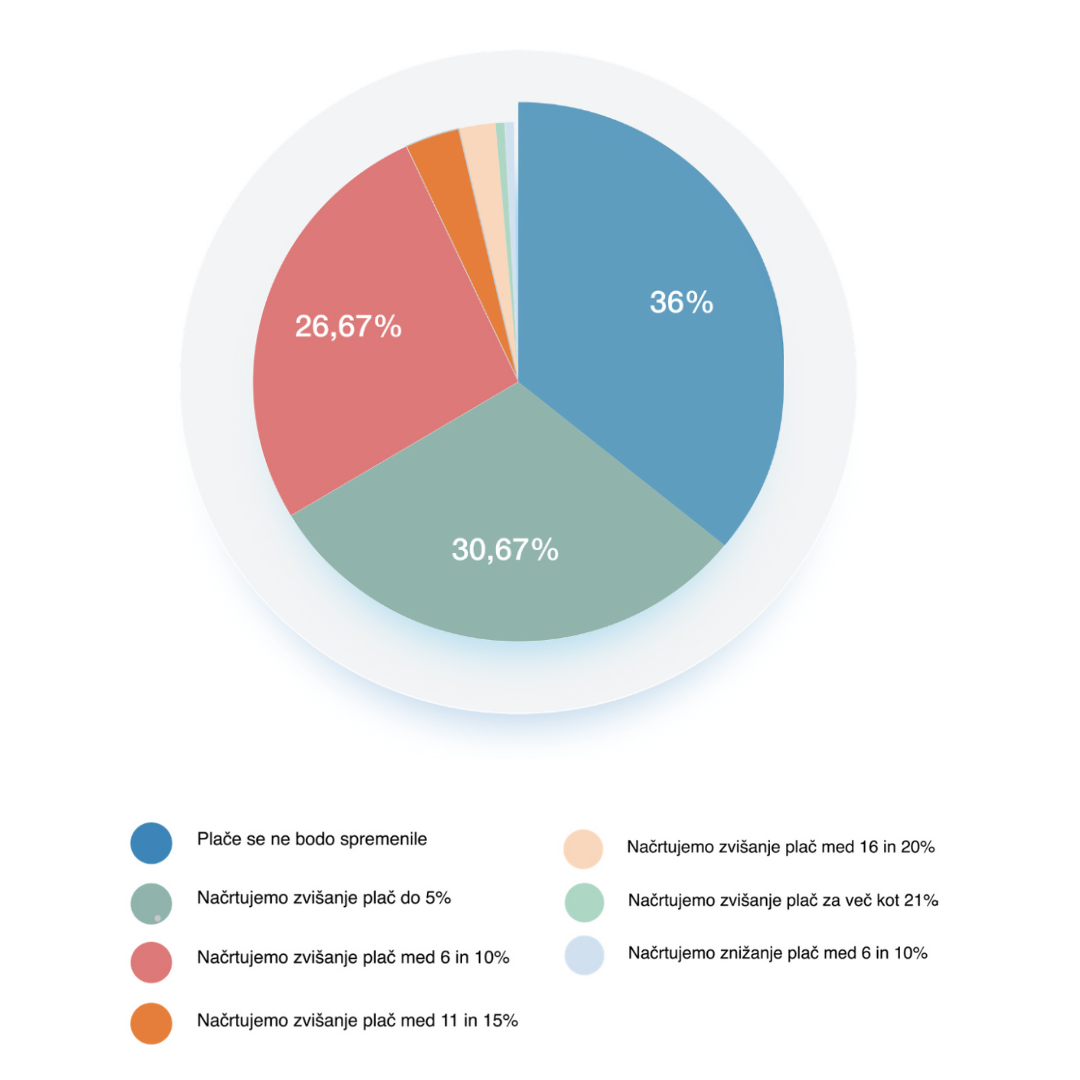 Po podatkih iz raziskave, največji delež slovenskih delodajalcev (36 %) v raziskavi napoveduje, da se plače v drugem polletju 2022 ne bodo spremenile, 30,7 % jih napoveduje, da bodo plače zvišali za pet odstotkov, 26,7 % pa napoveduje dvig plač za od šest do deset odstotkov.